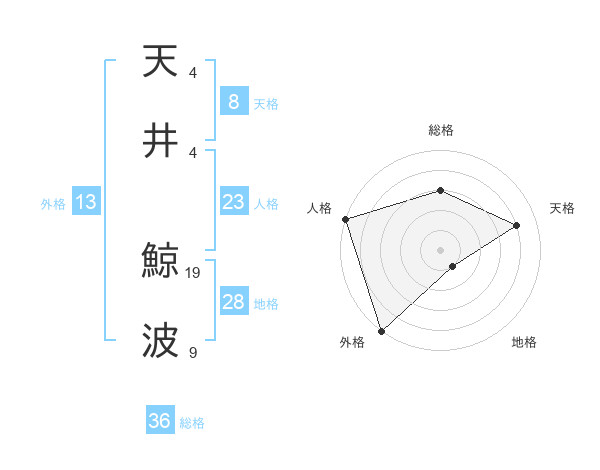 天井 鯨波さんの総格は36画の3点!