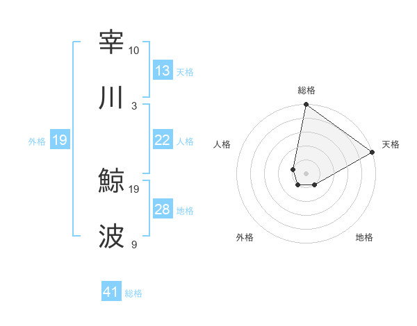 宰川 鯨波さんの総格は41画の5点!