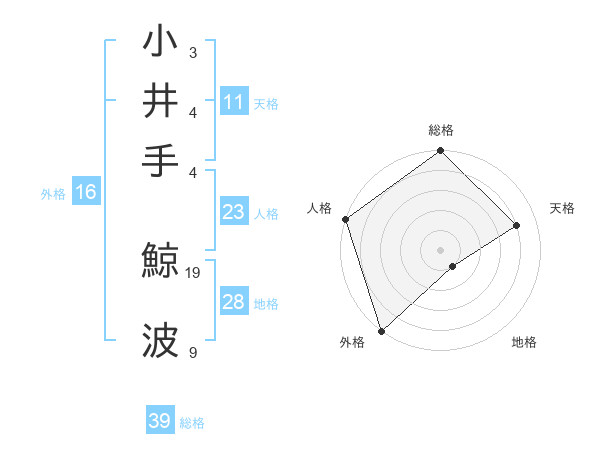 小井手 鯨波さんを姓名の画数から五運を鑑定