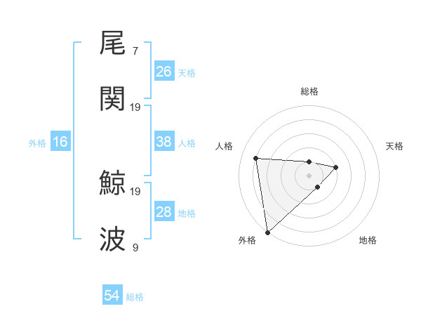 尾関 鯨波さんを姓名の画数から五運を鑑定