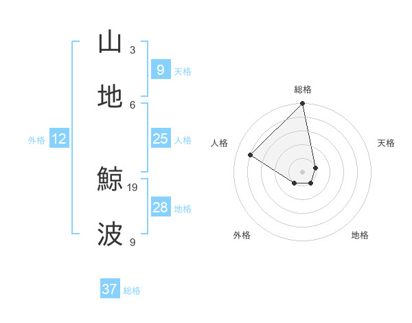 山地 鯨波さんの総格は37画の5点!