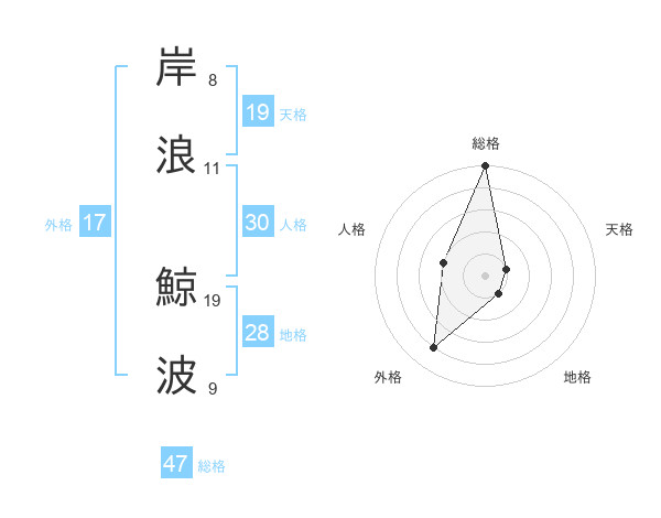 岸浪 鯨波さんを姓名の画数から五運を鑑定
