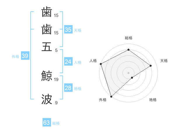 歯歯五 鯨波さんの外格は39画の5点!