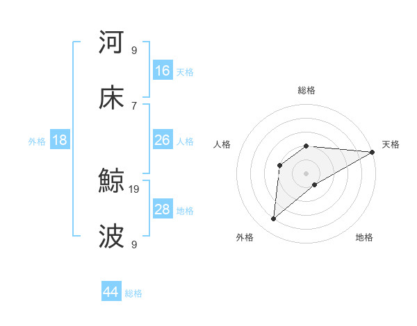 河床 鯨波さんの天格は16画の5点!