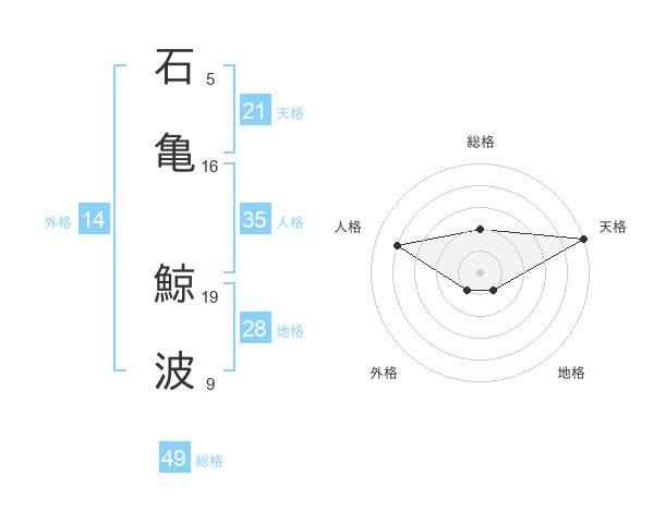 石亀 鯨波さんの天格は21画の5点!