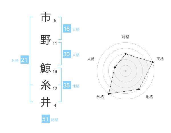 市野 鯨糸井さんを姓名の画数から五運を鑑定