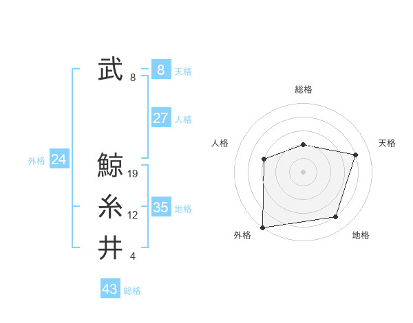 武 鯨糸井さんの総格は43画の2点!