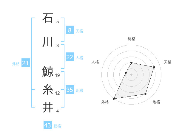 石川 鯨糸井さんを姓名の画数から五運を鑑定