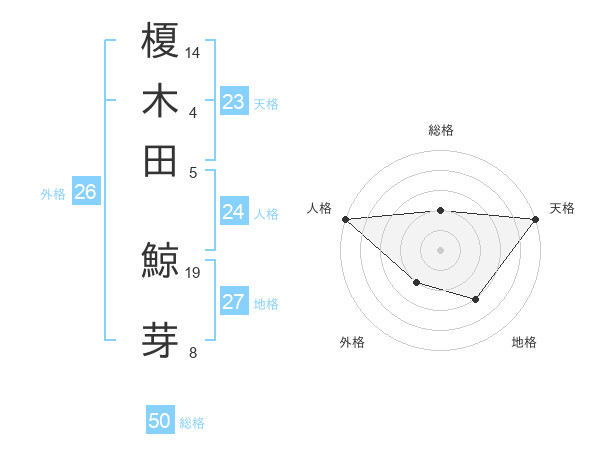 榎木田 鯨芽さんを姓名の画数から五運を鑑定