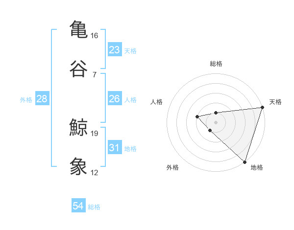 亀谷 鯨象さんを姓名の画数から五運を鑑定