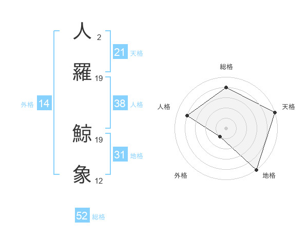 人羅 鯨象さんの総格は52画の4点!