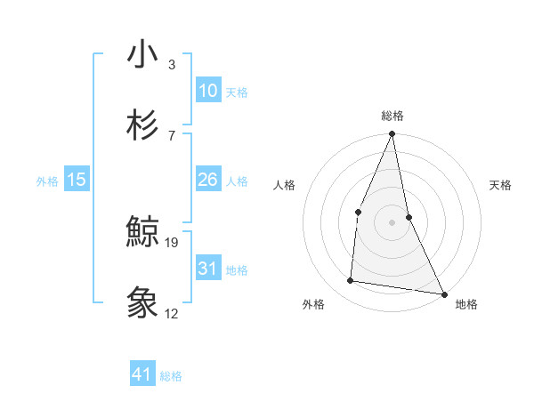 小杉 鯨象さんの総格は41画の5点!