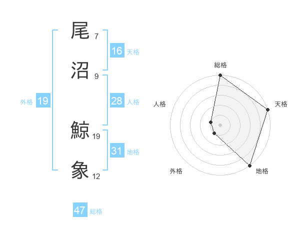 尾沼 鯨象さんを姓名の画数から五運を鑑定