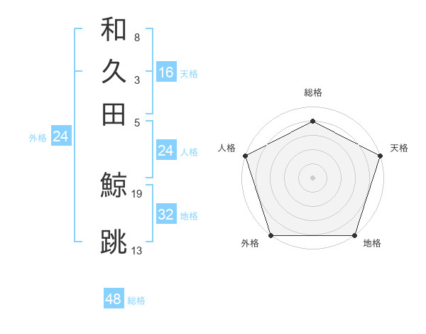 和久田 鯨跳さんを姓名の画数から五運を鑑定