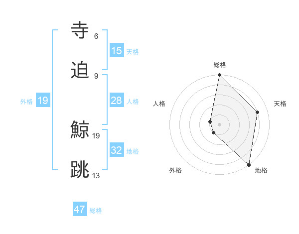 寺迫 鯨跳さんの地格は32画の5点!