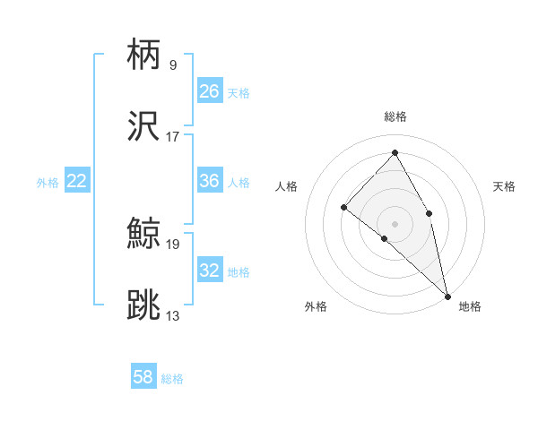柄沢 鯨跳さんを姓名の画数から五運を鑑定