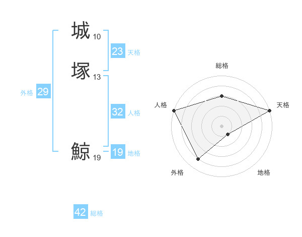 城塚 鯨さんの天格は23画の5点!