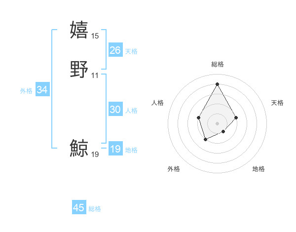 嬉野 鯨さんの総格は45画の4点!