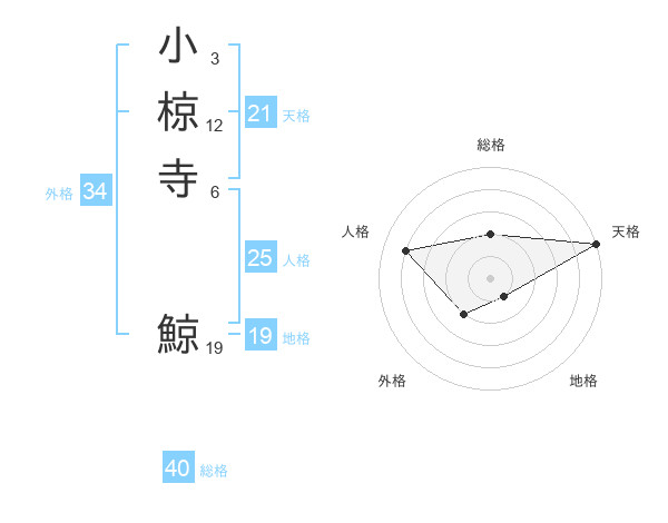 小椋寺 鯨さんの天格は21画の5点!