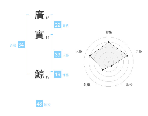 廣實 鯨さんを姓名の画数から五運を鑑定