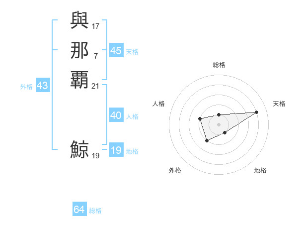 與那覇 鯨さんを姓名の画数から五運を鑑定