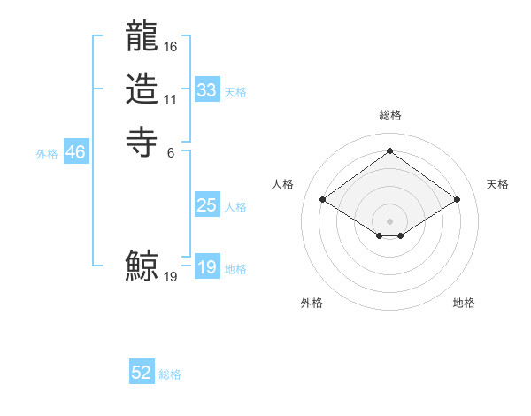 龍造寺 鯨さんの総格は52画の4点!