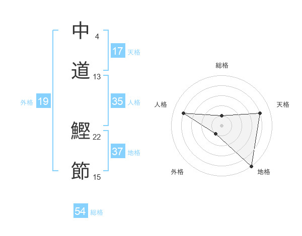 中道 鰹節さんの総格は54画の1点!