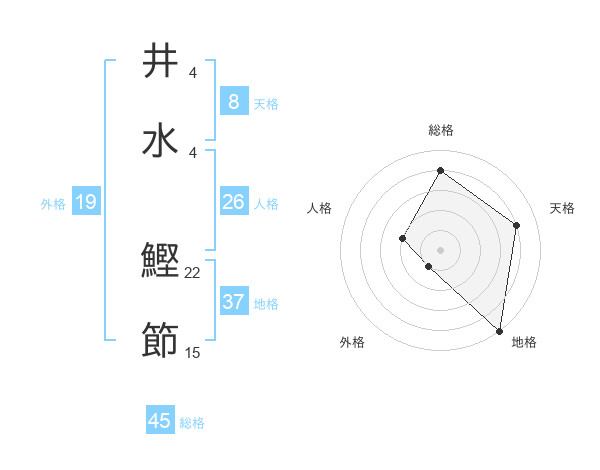 井水 鰹節さんの総格は45画の4点!