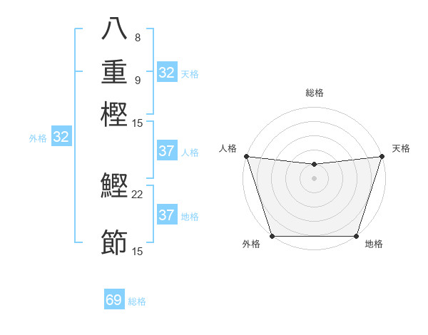 八重樫 鰹節さんを姓名の画数から五運を鑑定