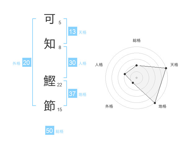 可知 鰹節さんの地格は37画の5点!