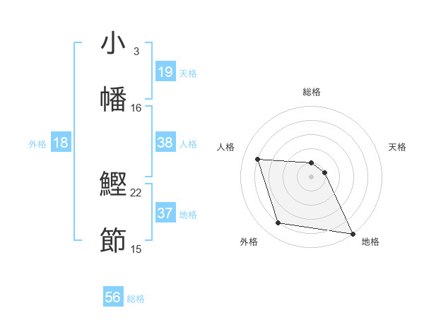 小幡 鰹節さんの総格は56画の1点!