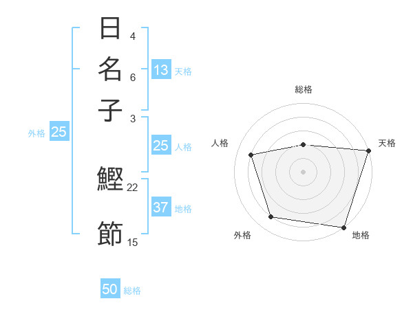 日名子 鰹節さんの総格は50画の2点!