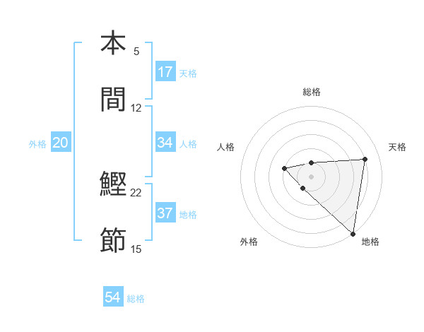 本間 鰹節さんを姓名の画数から五運を鑑定