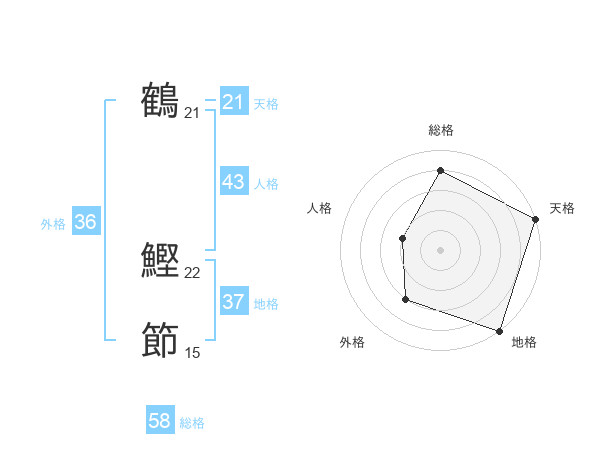 鶴 鰹節さんを姓名の画数から五運を鑑定
