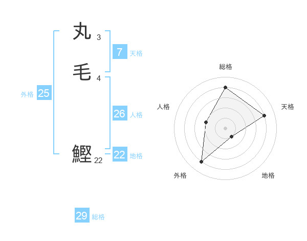 丸毛 鰹さんを姓名の画数から五運を鑑定