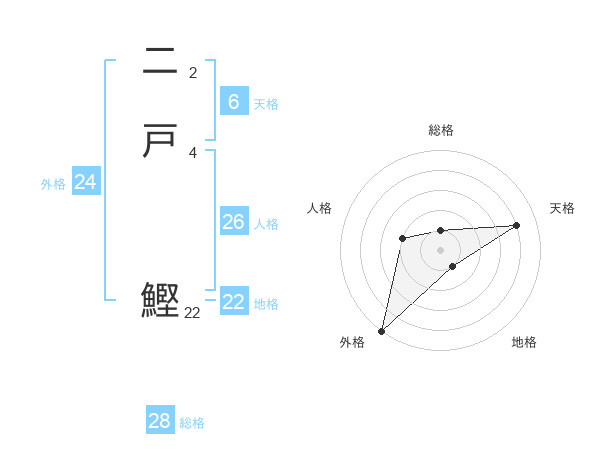 二戸 鰹さんの総格は28画の1点!
