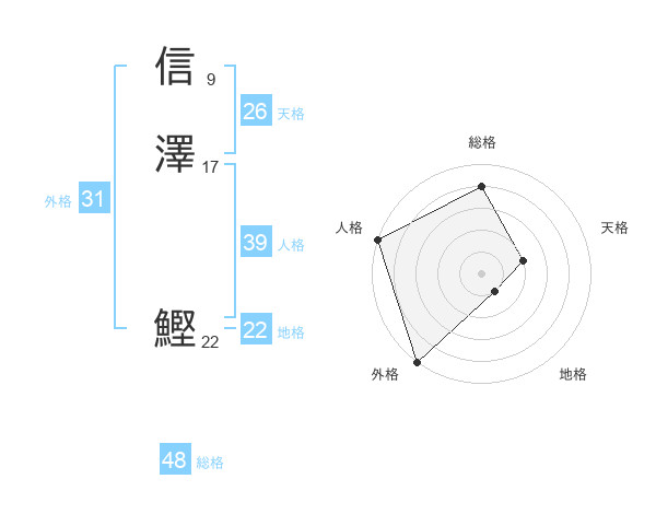 信澤 鰹さんの総格は48画の4点!