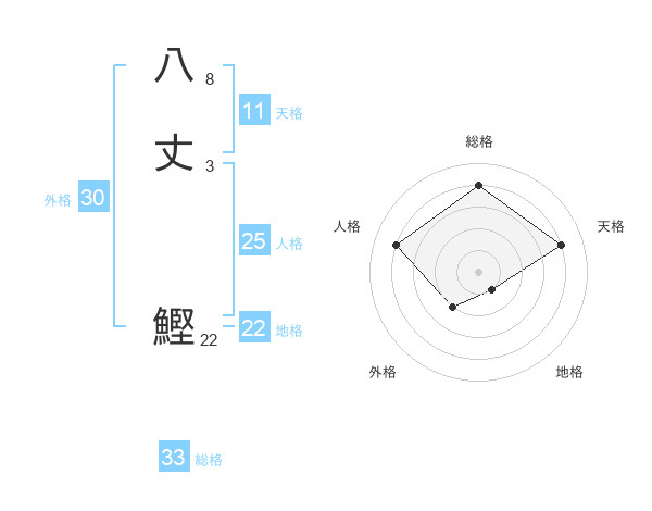八丈 鰹さんの総格は33画の4点!