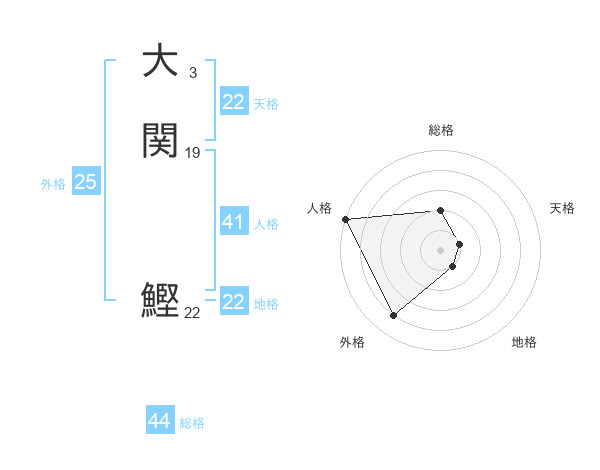大関 鰹さんの地格は22画の1点!