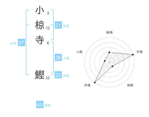 小椋寺 鰹さんの天格は21画の5点!
