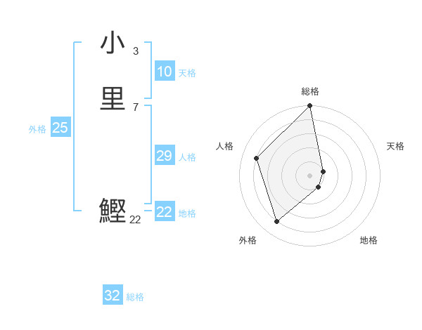 小里 鰹さんの総格は32画の5点!