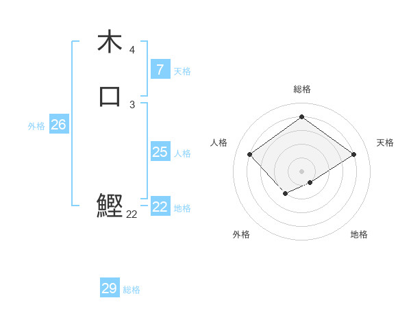 木口 鰹さんの総格は29画の4点!