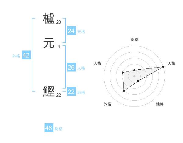 櫨元 鰹さんの天格は24画の5点!