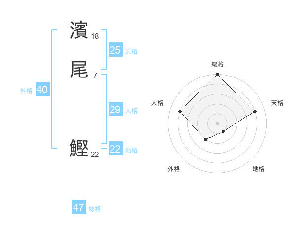 濱尾 鰹さんを姓名の画数から五運を鑑定