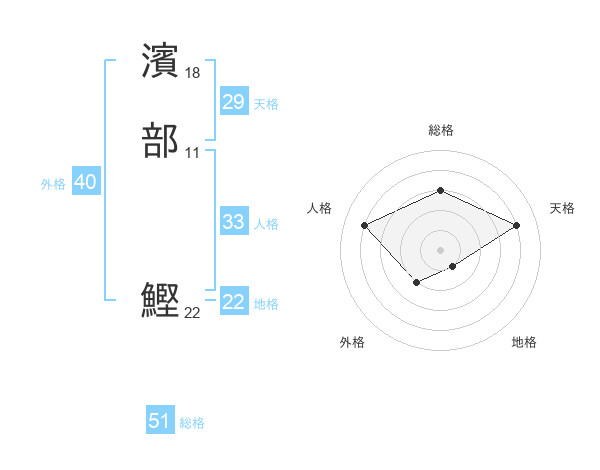 濱部 鰹さんの総格は51画の3点!
