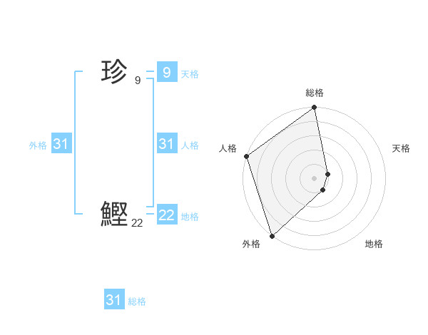 珍 鰹さんの総格は31画の5点!