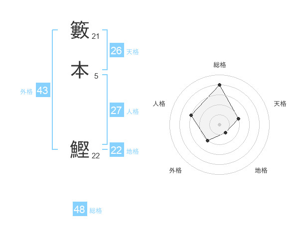 籔本 鰹さんの総格は48画の4点!