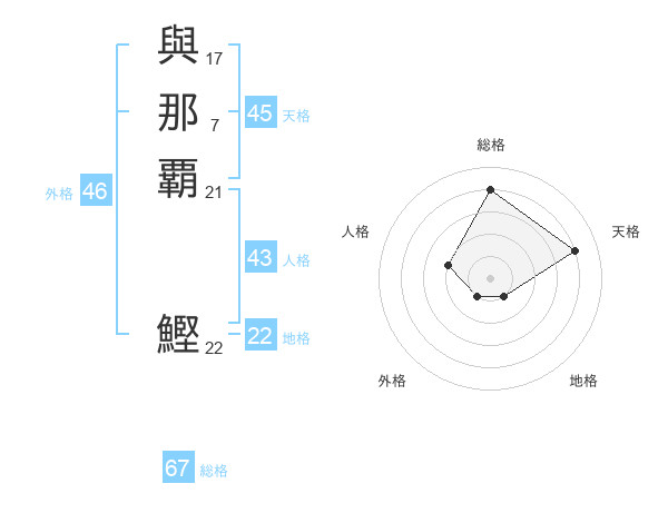 與那覇 鰹さんを姓名の画数から五運を鑑定
