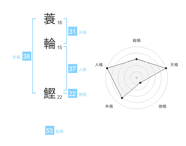 蓑輪 鰹さんの天格は31画の5点!
