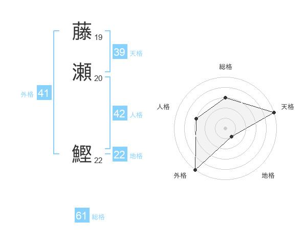 藤瀬 鰹さんの総格は61画の3点!